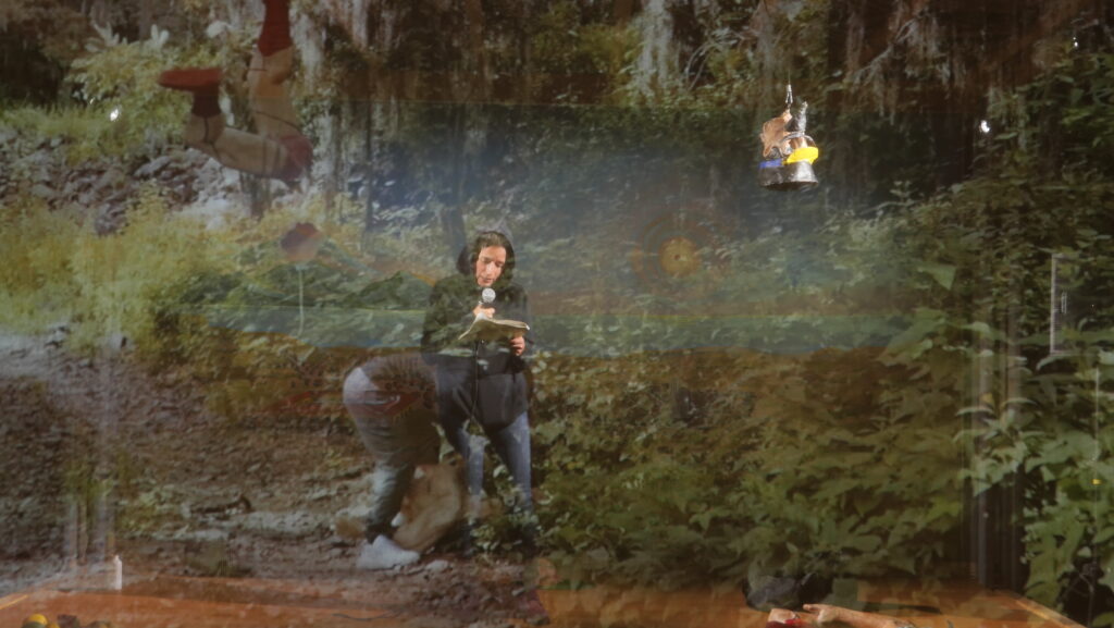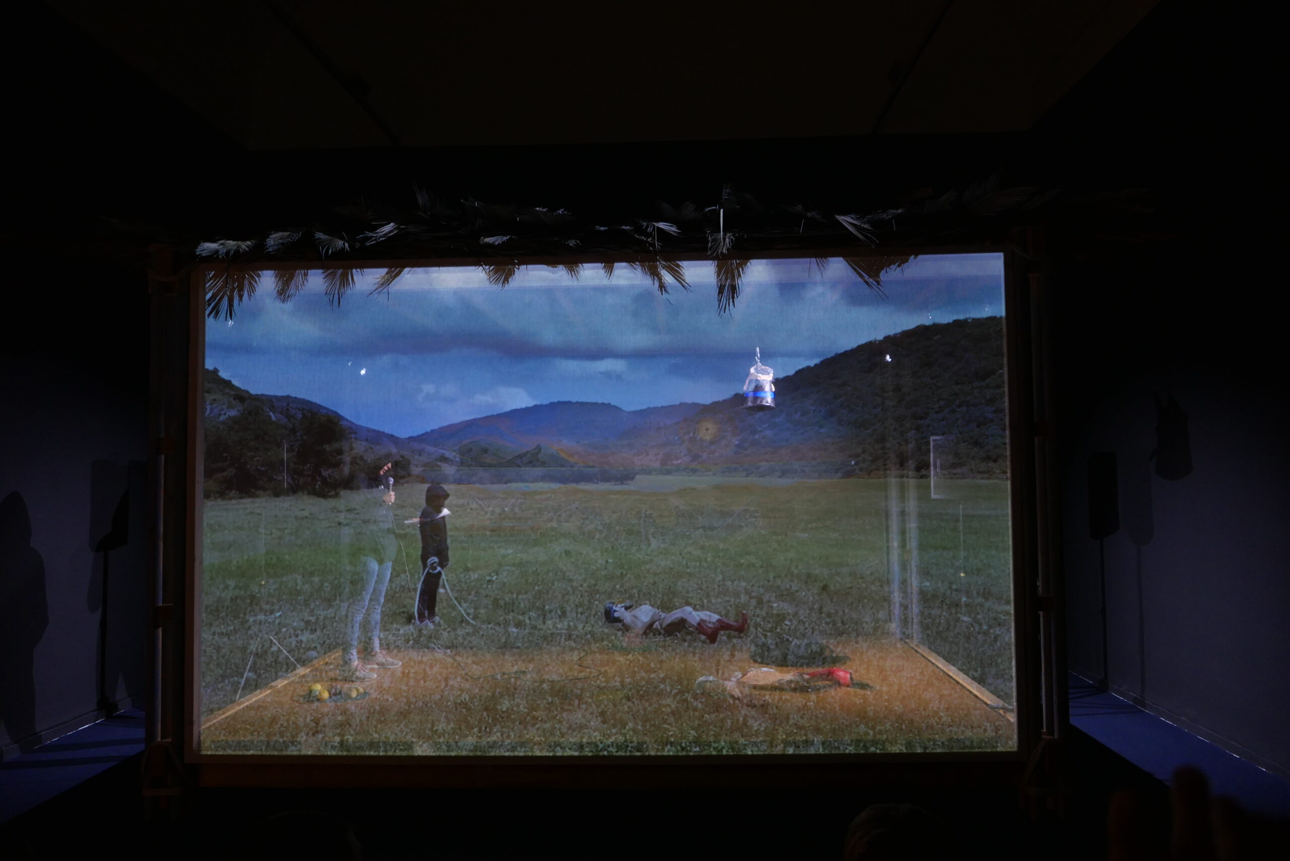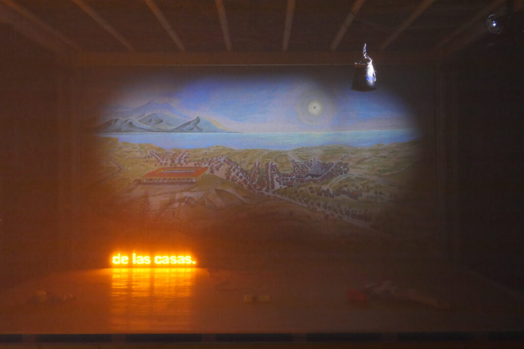 Con ese material hicimos una dramaturgia que se relacionaría con la novela de Valle Inclán y textos de Paul Leduc y Rubén Fonseca. La pieza final consta de un escenario con un telón de fondo que evoca a aquellos paisajes y personajes descritos en la novela. Al frente de ese telón hay una gasa donde se proyecta un video a través del cual escuchamos la dramaturgia epistolar. Entre octubre de 2024 y marzo de 2025 en ese escenario también se desarrollaron activaciones performativas: una actriz dando cuerpo y voz a las palabras de estas mujeres a quienes un tirano les cambió la vida forzándolas al exilio y que, dirigiéndose a un personaje ficticio, nos hablan de la realidad. Una realidad igual o más esperpéntica que la que dio origen a la novela. Nuestra idea original era que estas mujeres dieran lectura a sus cartas, aunque solo viéramos sus espaldas en un video, pero finalmente no quisimos ponerlas en riesgo ni a ellas ni a sus familias.